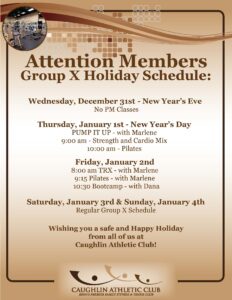 • Holiday Facility Hours & Group X Schedule